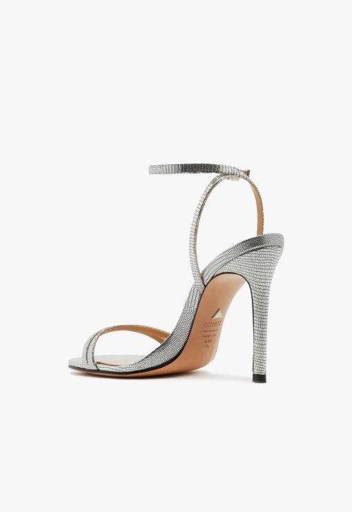 Discover the epitome of evening elegance: the Altina Sandal. Crafted in prime embossed leather, it boasts delicate barely-there straps, a customizable ankle strap, and a poised stiletto heel. Elevate your evenings with Altina’s refined allure.