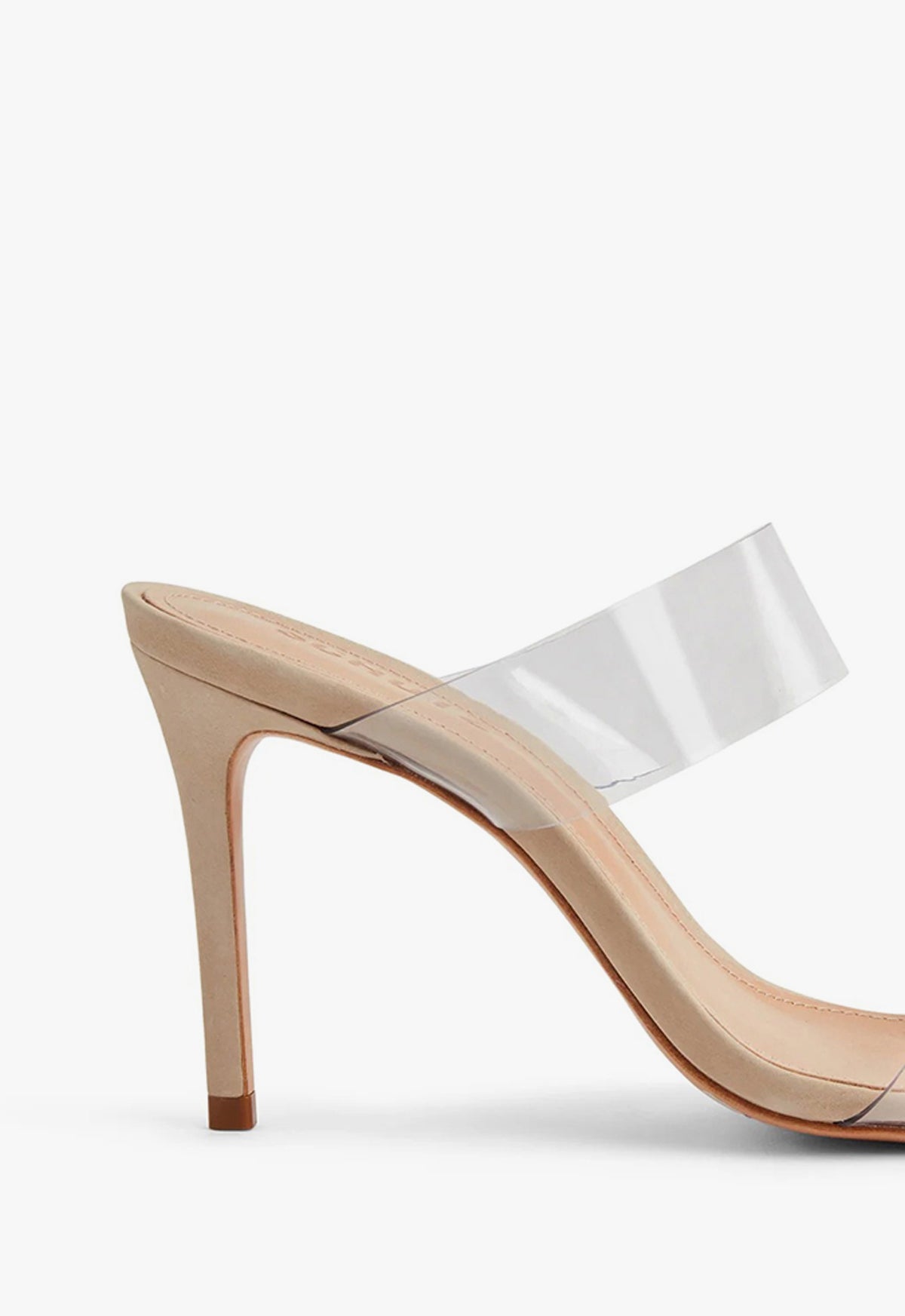 Experience sophistication like never before with the iconic Ariella Sandal. This exquisite sandal effortlessly melds minimalist charm with striking allure, boasting sleek clear vinyl straps that gracefully envelop your feet, culminating in an exquisite stiletto heel.