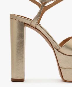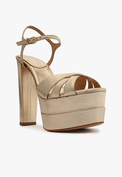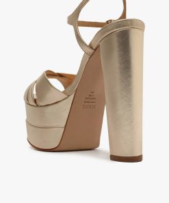 Crafted with a luxurious metallic gold leather, this sandal features a slim block heel, adjustable ankle strap, and criss-cross straps for a stylish look. Ultimately, the Keefa High Nappa Leather Sandal will keep you comfortable and fashionable for any occasion.
