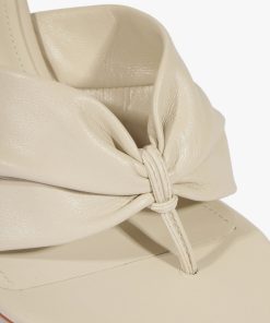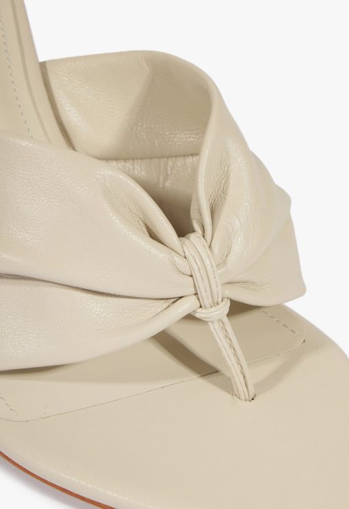 This fresh take on the Lori mule features a mid-heel for effortless wear. The knotted leather strap brings an undone attitude to this slip-on silhouette. A leafed toe sharpens the look, keeping it modern and refined. Designed for versatility, it pairs with everything from tailored trousers to denim. These are the sandals to reach for when you want something easy yet impactful for your day’s outfit.