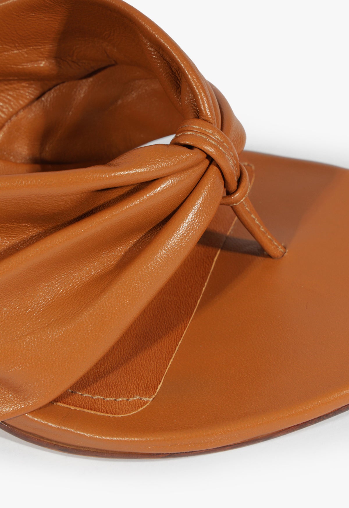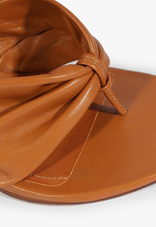 This fresh take on the Lori mule features a mid-heel for effortless wear. The knotted leather strap brings an undone attitude to this slip-on silhouette. A leafed toe sharpens the look, keeping it modern and refined. Designed for versatility, it pairs with everything from tailored trousers to denim. These are the sandals to reach for when you want something easy yet impactful for your day’s outfit.