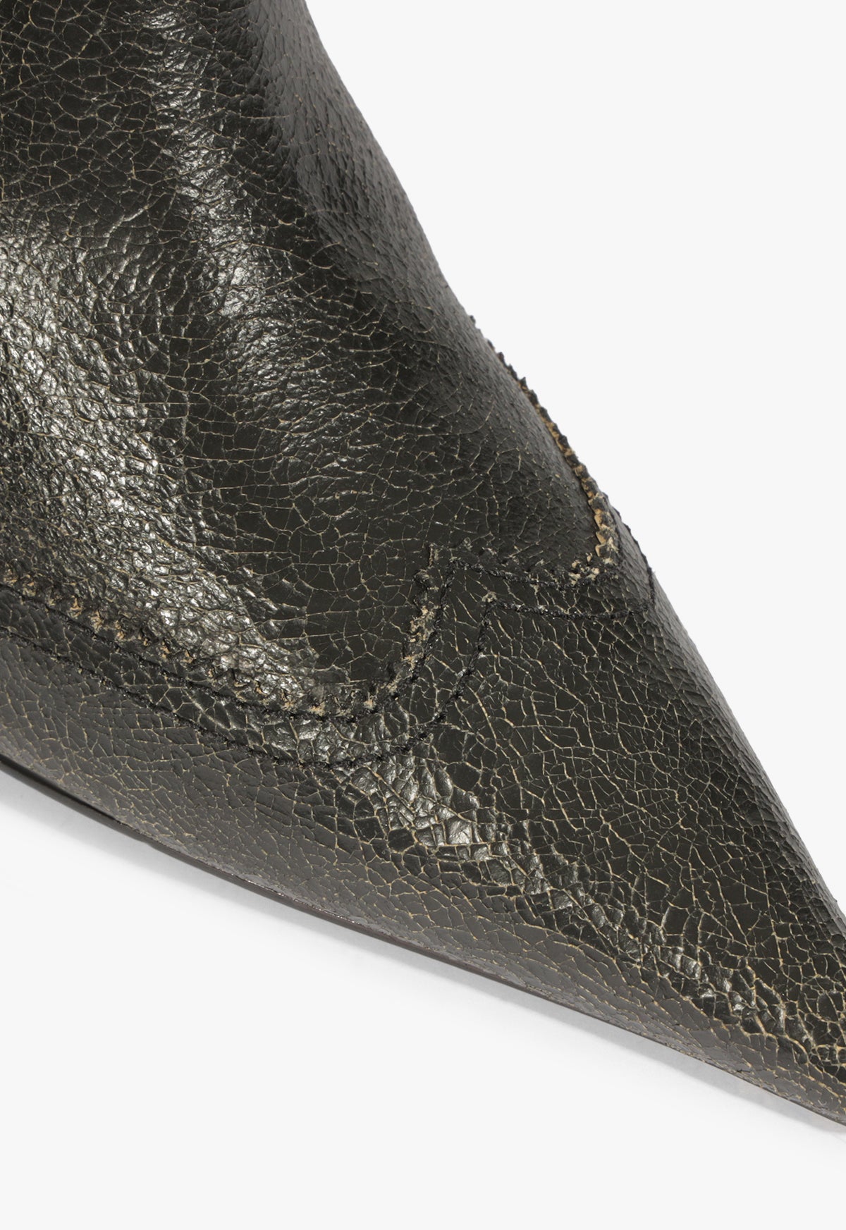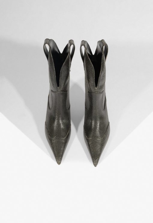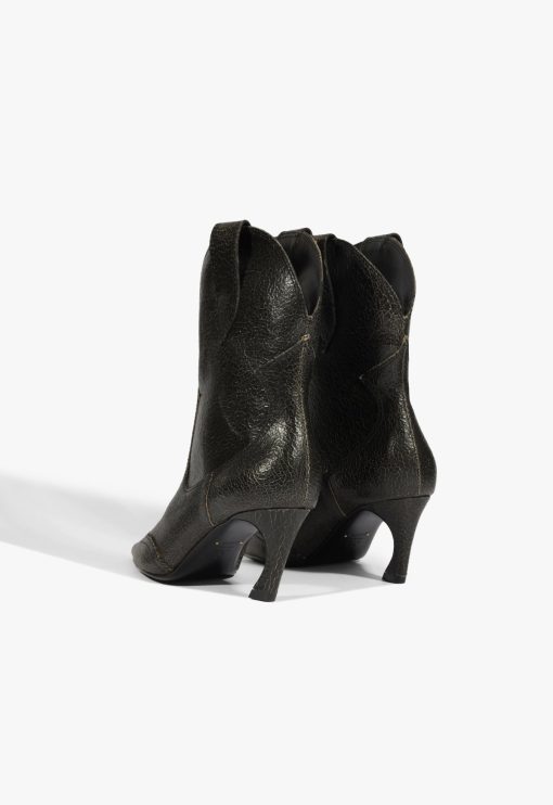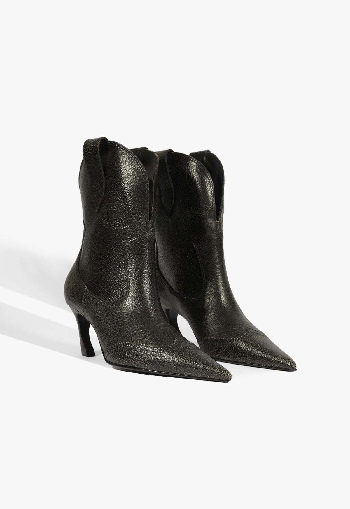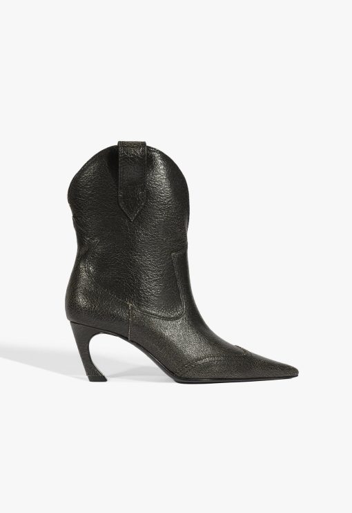 Maryann is the boot that breaks the rules—featuring Western roots, fashion-forward curves, crafted in black leather, and a sharply pointed finish. The arched heel brings an architectural twist, while the black-on-black look keeps things clean and grounded. It’s all about tension: heritage shape, sculptural edge. Pair with wide-leg pants, midi skirts, or tonal leather for maximum impact. This boot doesn’t follow trends because it sets the tone automatically.