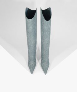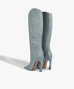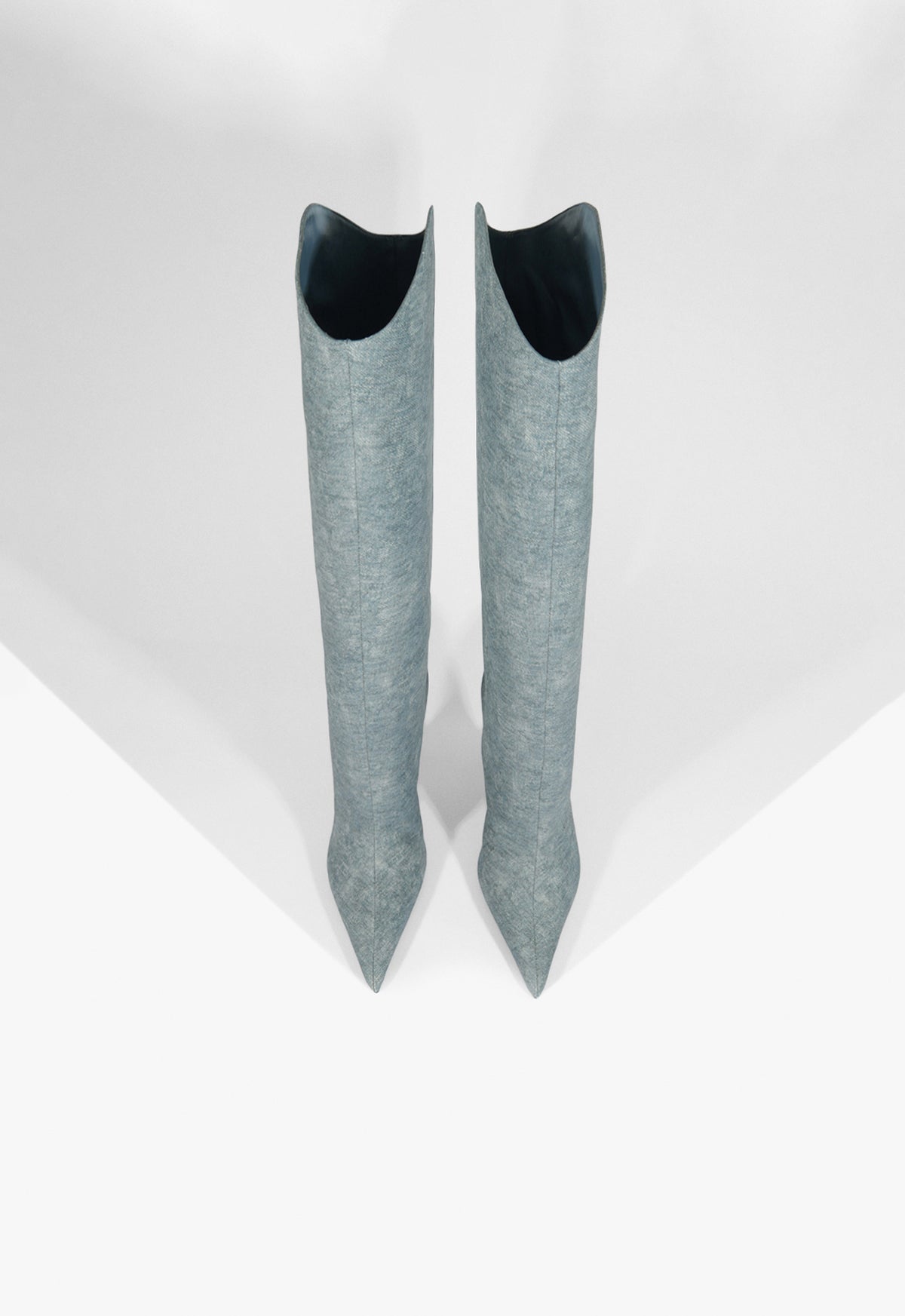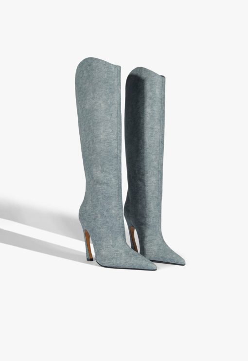 This version of the Maryann boot elevates Western heritage with a tall, commanding silhouette and a swooped wedge heel that turns heads from every angle. The blue leather feels timeless and grounded, while the pointed toe and contoured shaft bring modern precision. It’s equal parts cool, sculptural, and confident, which you could style with a high-slit skirt, oversized blazer, or dark denim and a crisp button-up, giving cowboy energy a reimagined runway edge.