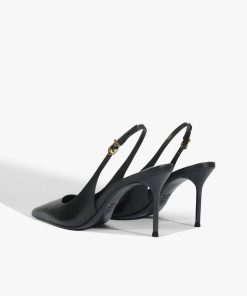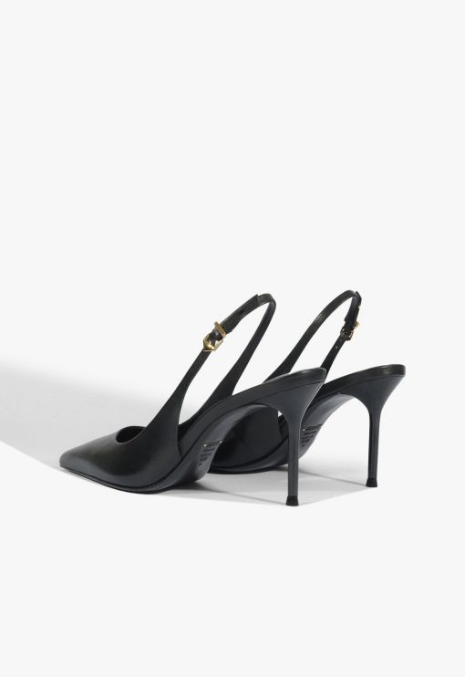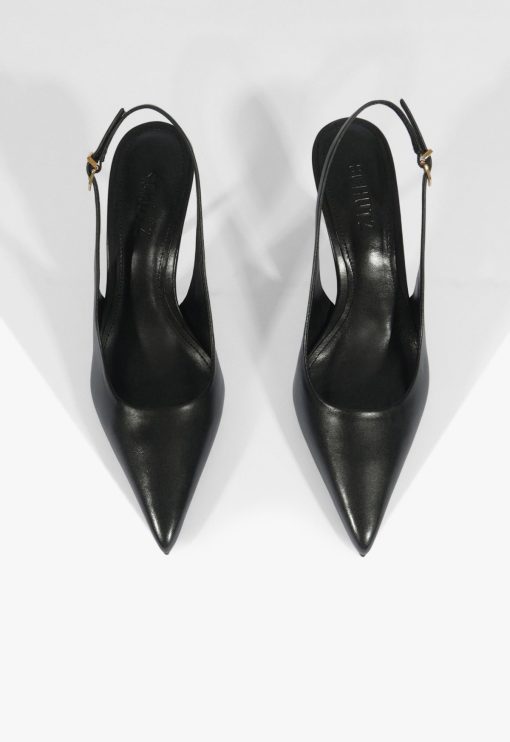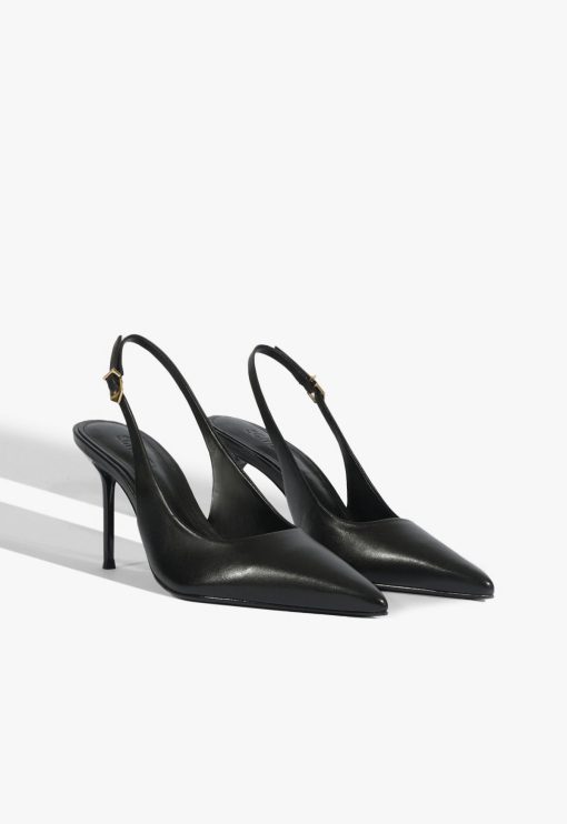 Slingback meets power pump—Paola brings razor-sharp lines and a cool, pared-back silhouette. The black leather is smooth and minimal, letting the shape do the talking. A pointed toe gives it an edge, while the open heel adds softness to the look with just the right amount of airiness. It’s your desk-to-drinks, meeting-to-moment kind of heel. Clean, strong, and endlessly wearable.