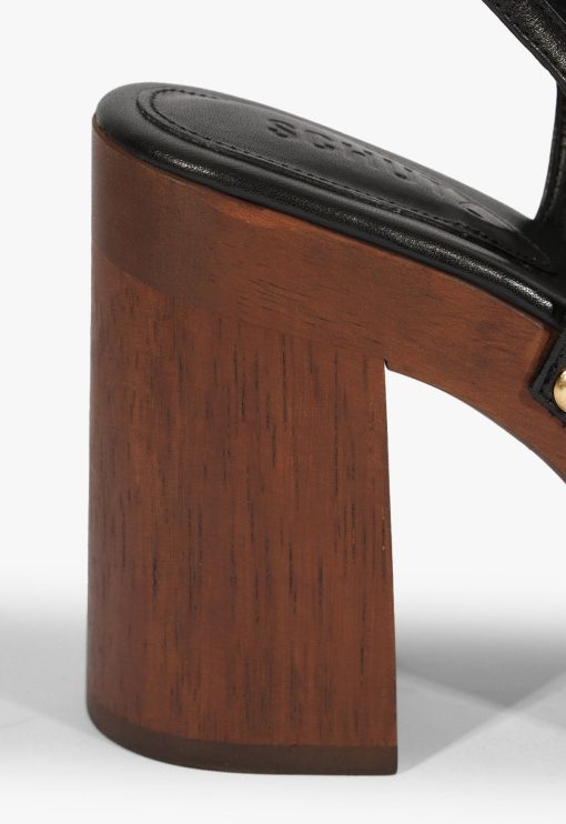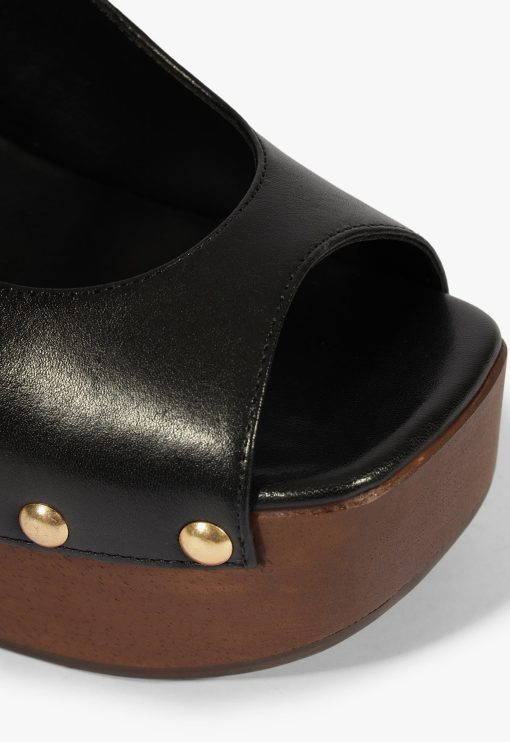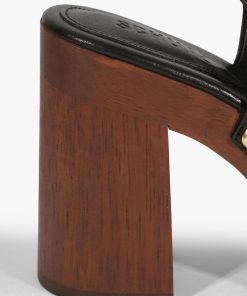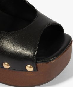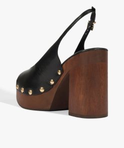 The Rose sandal blends soft black leather with bold wood for a platform that’s anything but shy. Gold studs wrap the base, adding just the right flash of hardware. The chunky block heel brings serious height, balanced by a walkable platform. A slingback strap keeps things grounded. Pair it with structured separates, or go full retro with wide-leg denim.