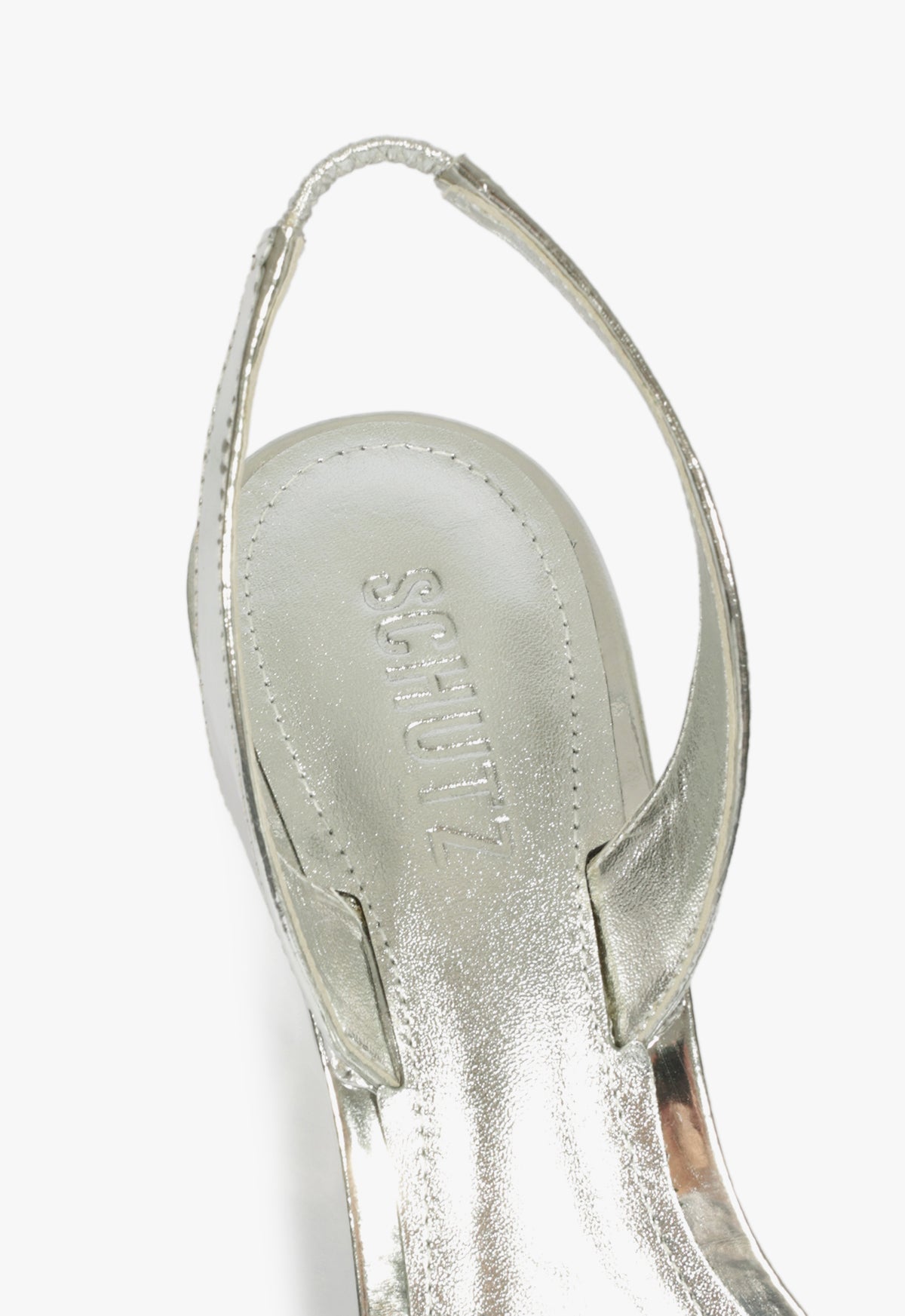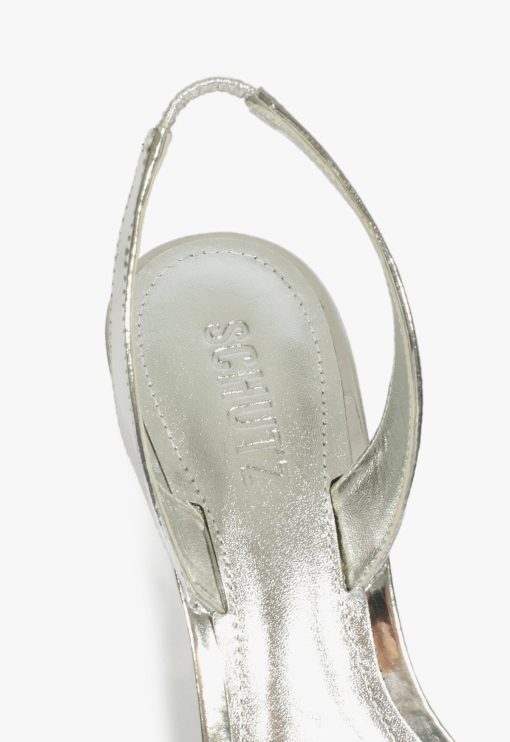 Be the first to review “Schutz Shoes Women’s Shoes Scarlett Sling Mid Metallic Sandal | Silver” Cancel reply