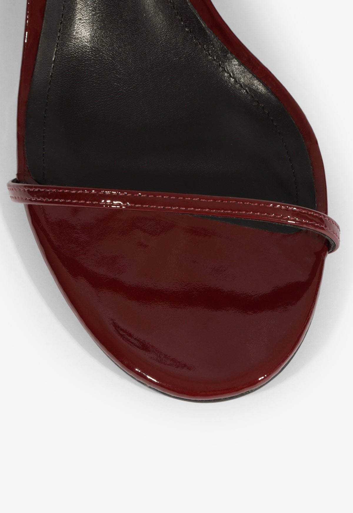 Sleek, sculptural, and unapologetically red—the Siena Mid Curve sandal does the most with the least. Its glossy patent leather catches the light with every step. The curved mid-heel nods to futuristic form, while the thin straps keep it grounded in classic cool. These sandals were designed to complement your jeans or pair well with your prints.
